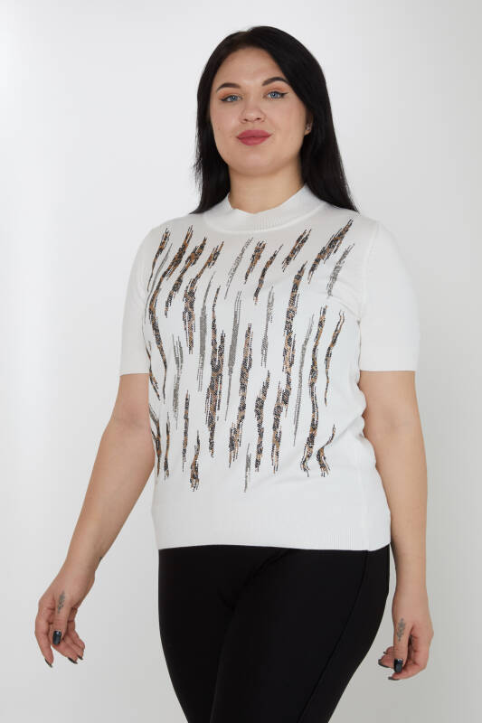 سترة محبوكة بنقشة جلد النمر وياقة قائمة باللون البيج الفاتح - 31565 | كازي (مجموعة من 3 مقاسات M-L-XL)