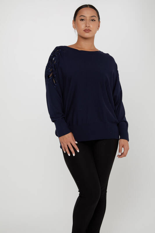 سترة محبوكة بتفاصيل كتف باللون الأزرق الداكن - 30931 | كازي (مجموعة من 4 مقاسات M-L-XL-2XL)