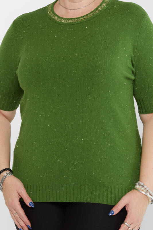 سترة محبوكة بياقة مزينة بترتر وأكمام قصيرة باللون الأخضر - 31610 | كازي (مجموعة من 3 مقاسات XL-2XL-3XL)