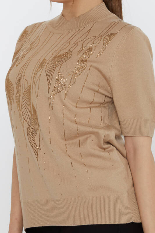 سترة محبوكة مطرزة بالأحجار باللون البيج - 30663 | كازي (مجموعة من 3 مقاسات XL-2XL-3XL)