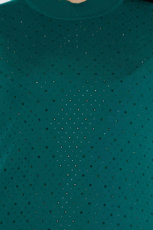 سترة محبوكة موديل أمريكي مطرزة بالأحجار باللون الأخضر - 31864 | كازي (مجموعة من 4 مقاسات L-XL-2XL-3XL)