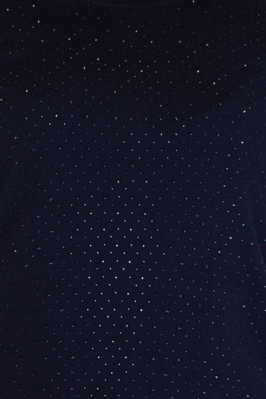 سترة محبوكة من الطراز الأمريكي مطرزة بالأحجار باللون الأزرق الداكن - 31864 | كازي (مجموعة من 4 مقاسات L-XL-2XL-3XL)