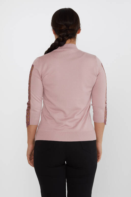 سترة تريكو بأكمام نافذة مطرزة بالحجر البودرة - 31245 | كازي (مجموعة من 3 مقاسات M-L-XL)