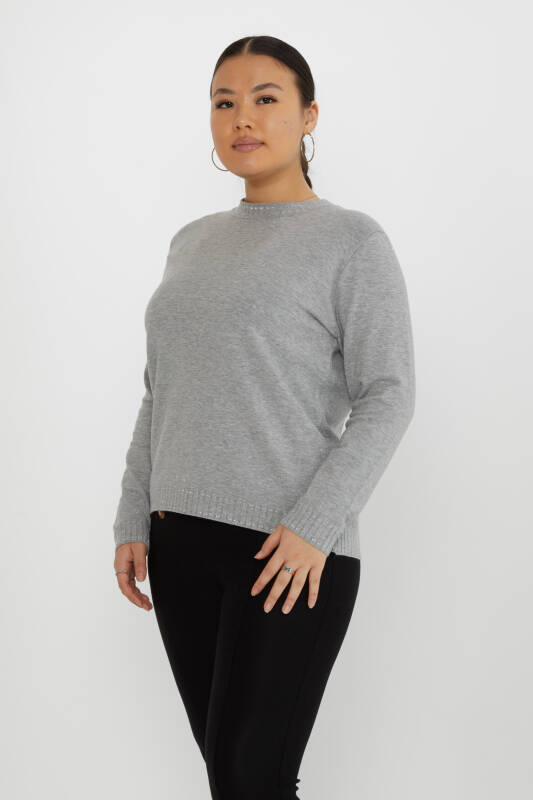 سترة تريكو بياقة عالية وأكمام طويلة رمادي - 31629 | كازي (مجموعة من 3 XL-2XL-3XL)