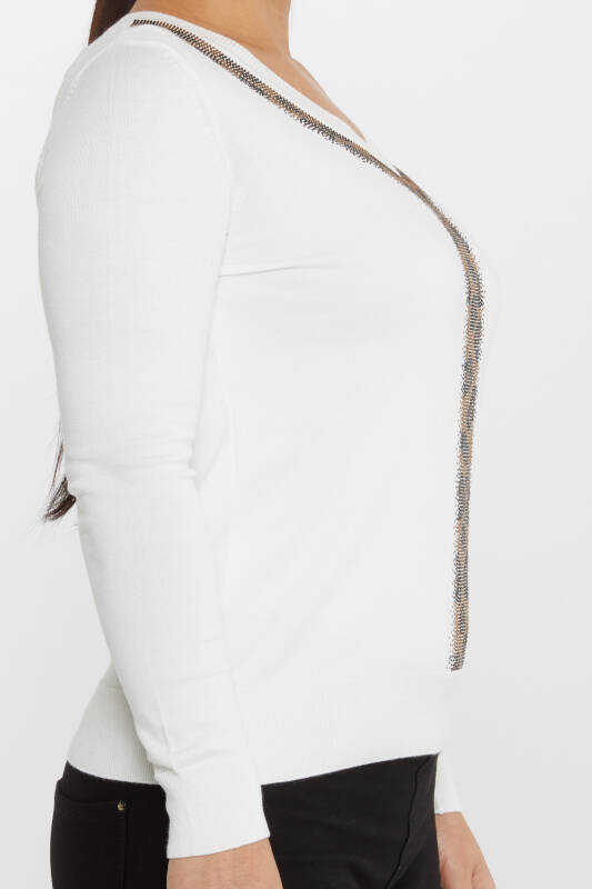 سترة تريكو نمط الفهد مطرزة بالحجر إكرو - 30749 | كازي (مجموعة من 4 M-L-XL-2XL)