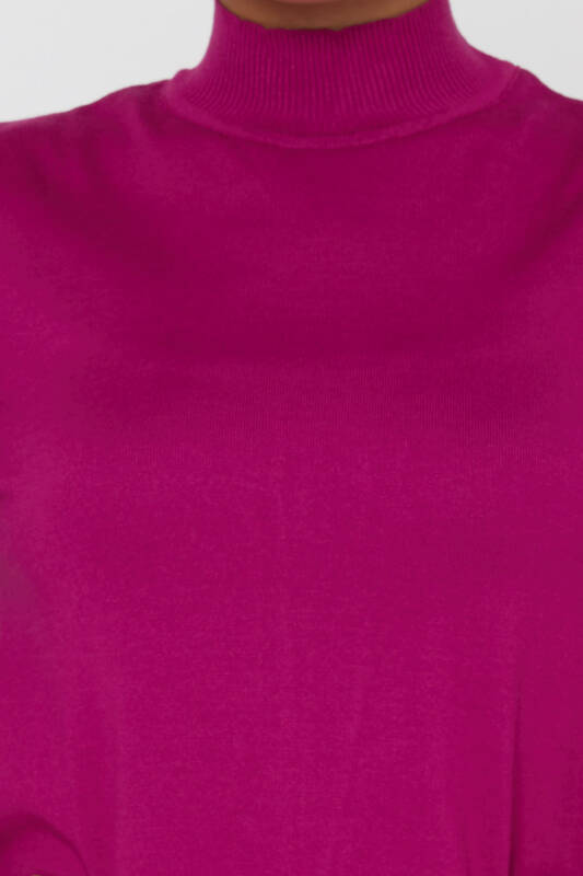 سترة تريكو بتفاصيل الشعار أساسية فوشيا داكنة - 16663 | كازي (مجموعة من 4 L-XL-2XL-3XL)