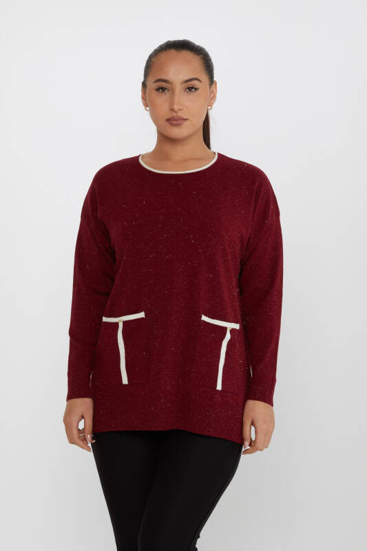 سترة تريكو بجيب مفصل وجليتر أحمر كلاريت - 31390 | كازي (مجموعة من 3 XL-2XL-3XL)
