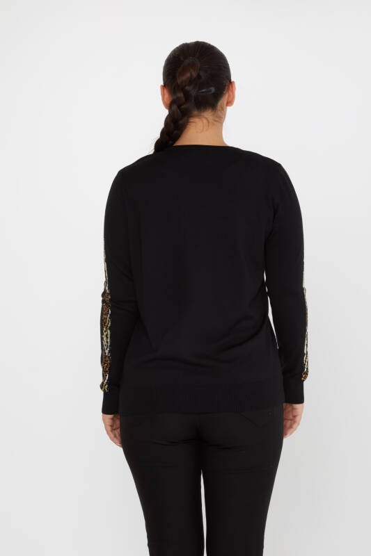 سترة تريكو مطرزة بحجر الفهد كم طويل أسود - 31547 | كازي (مجموعة من 3 XL-2XL-3XL)