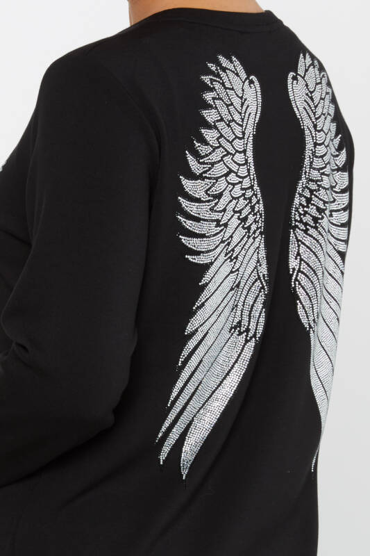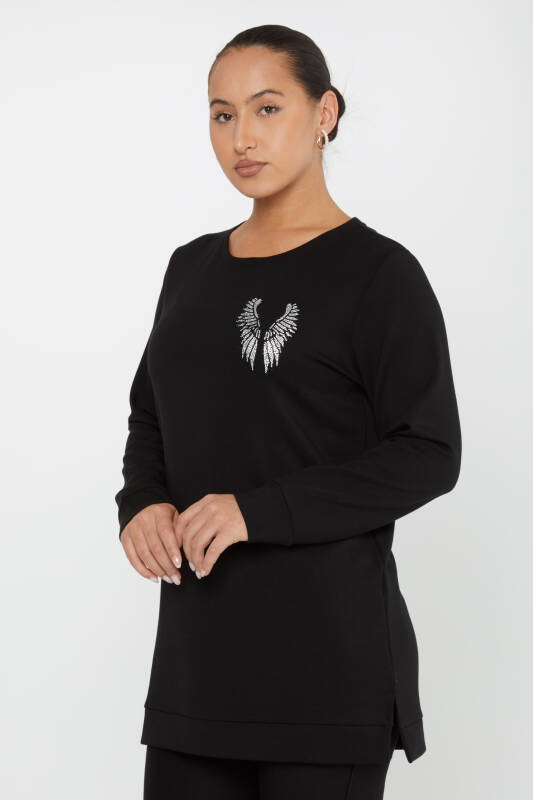 سويت شيرت بتفاصيل فتحة مطرزة بحجر الجناح أسود - 17853 | كازي (مجموعة من 3 مقاسات M-L-XL)