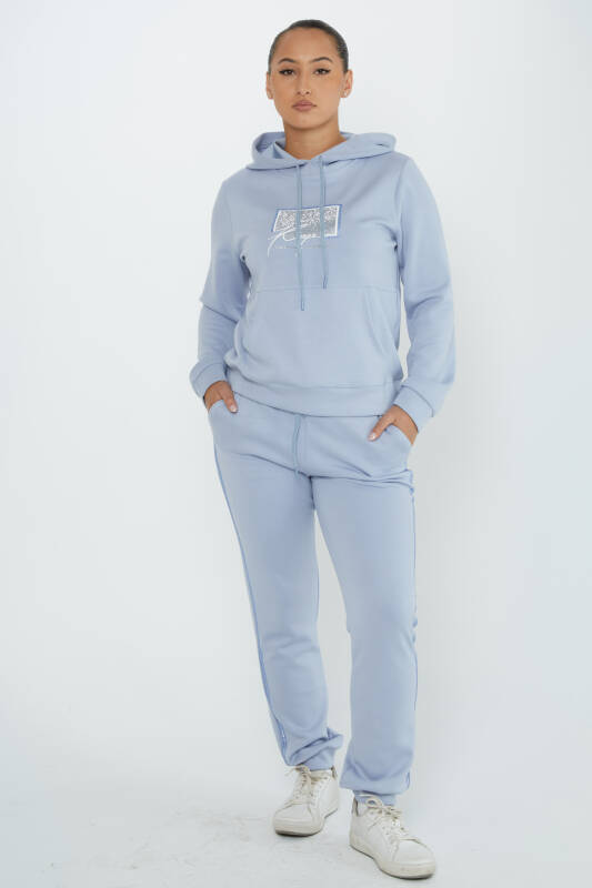 Tracksuit Set Hooded Stone Embroidered Blue - 17593 | KAZEE (Set of 4 M-L-XL-2XL)