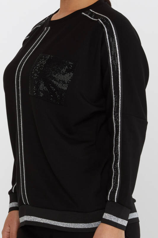 Sweatshirt Cep Taş İşlemeli Siyah-Ekru - 2245 | KAZEE (3'lü Set L-XL-2XL)