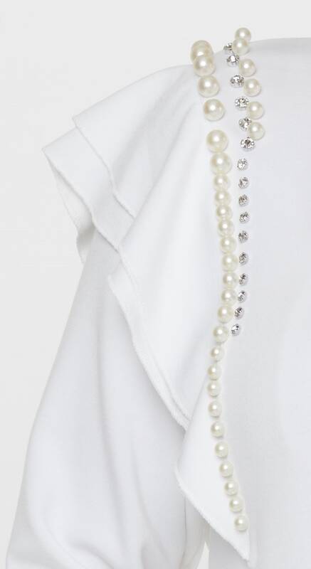 Sweatshirt Pearl Stone Embroidered Ruffle Sleeve Ecru - 17793 | KAZEE (Set of 3 M-L-XL)