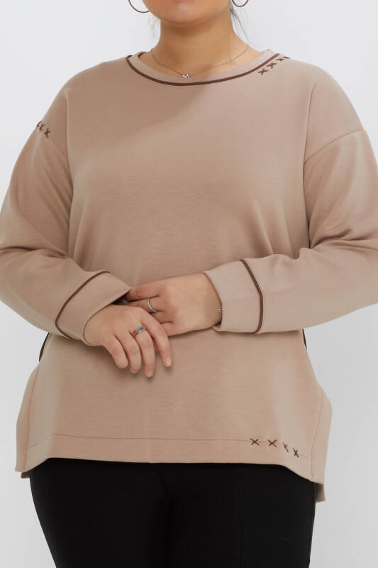 Sweatshirt mit Rundhalsausschnitt und Stickereidetails, Nerz – 17752 | KAZEE (3er-Set M-L-XL)