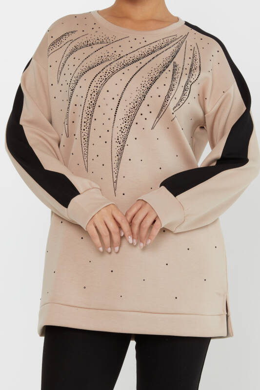 Sweatshirt Stone Embroidered Long Sleeve Beige - 17851 | KAZEE (Set of 3 L-XL-2XL)