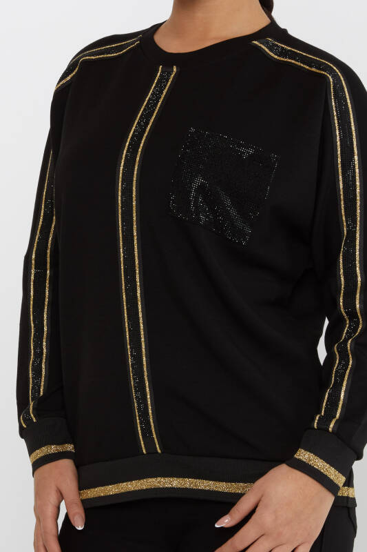 Sweatshirt mit Taschenstein-Stickerei, Langarm, Schwarz-Gold – 2245 | KAZEE (3er-Set L-XL-2XL)