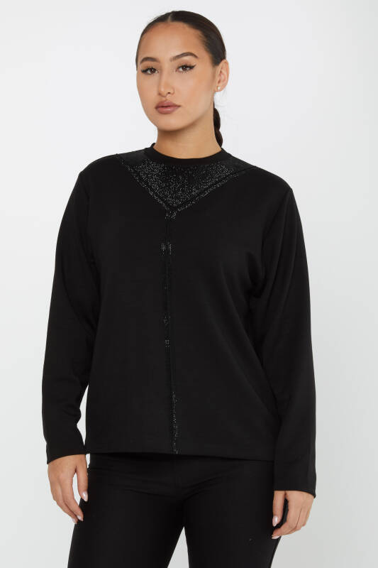 Bluza z kołnierzykiem Stone haftowana z długim rękawem w kolorze czarnym - 2231 | KAZEE (Zestaw 3 sztuk L-XL-2XL)