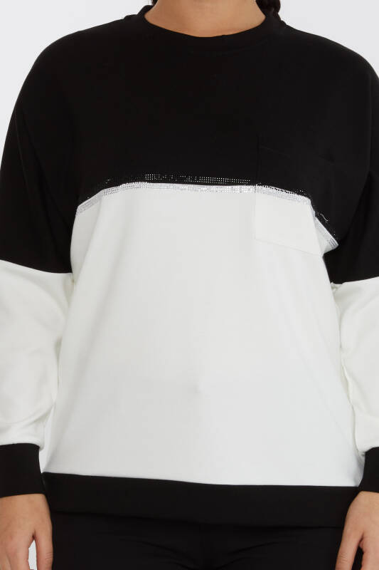 Sweatshirt Zweifarbig Langarm Schwarz-Ecru - 2311 | KAZEE (3er-Set S-M-L)
