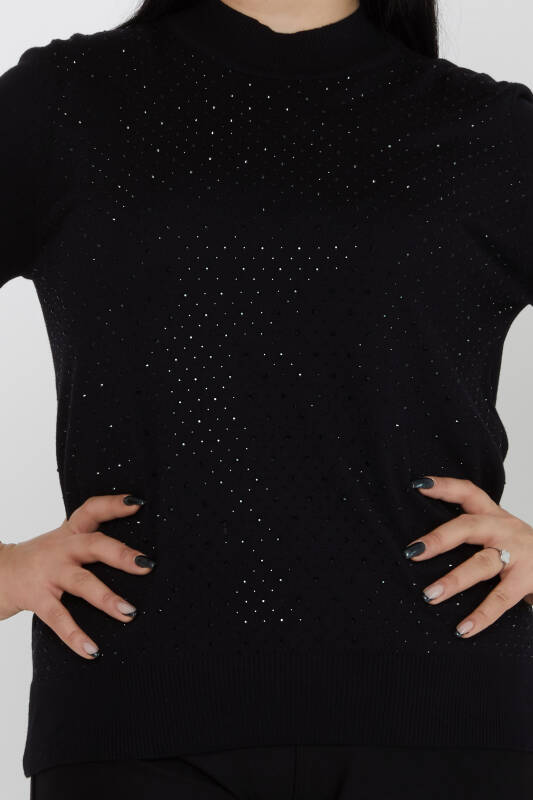 Sweter dzianinowy American Model Stone haftowany czarny - 31864 | KAZEE (zestaw 4 sztuk L-XL-2XL-3XL)