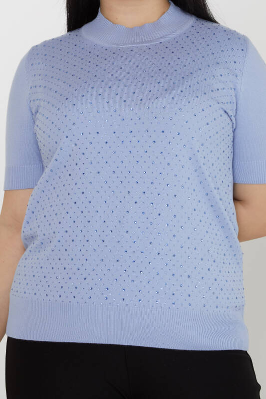 Sweter dzianinowy American Model Stone haftowany niebieski - 31864 | KAZEE (zestaw 4 sztuk L-XL-2XL-3XL)