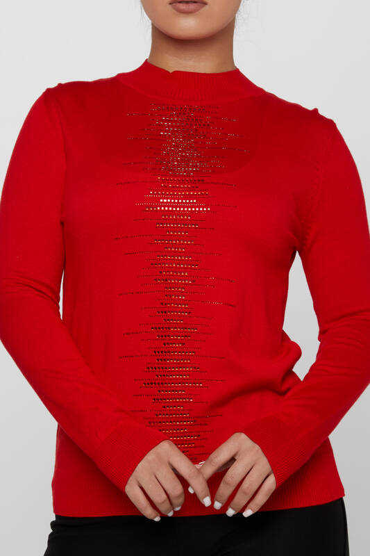 Sweter z dzianiny, haftowany w kamienie, z długim rękawem, czerwony - 30556 | KAZEE (zestaw 3 sztuk S-M-L)