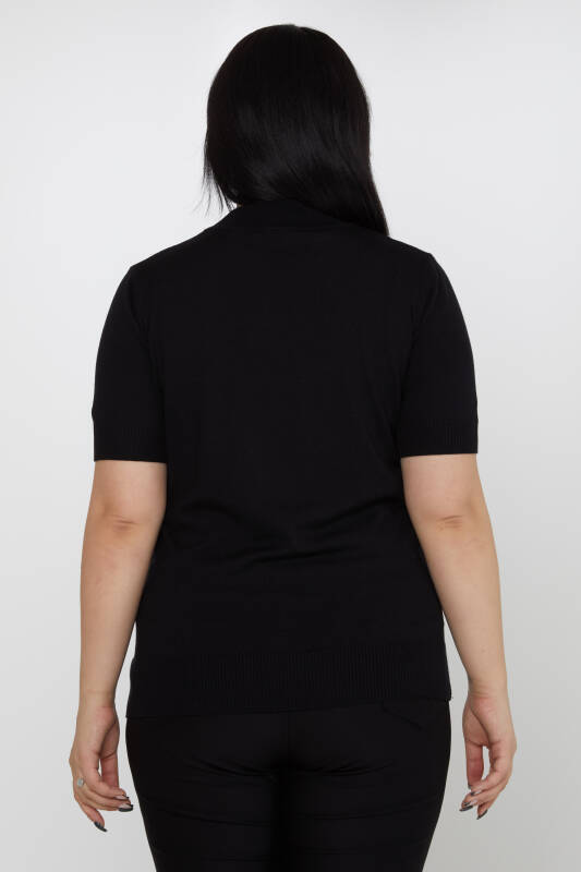 Sweter dzianinowy z haftowanym wzorem w panterkę i stójką, czarny - 31565 | KAZEE (zestaw 3 sztuk M-L-XL)