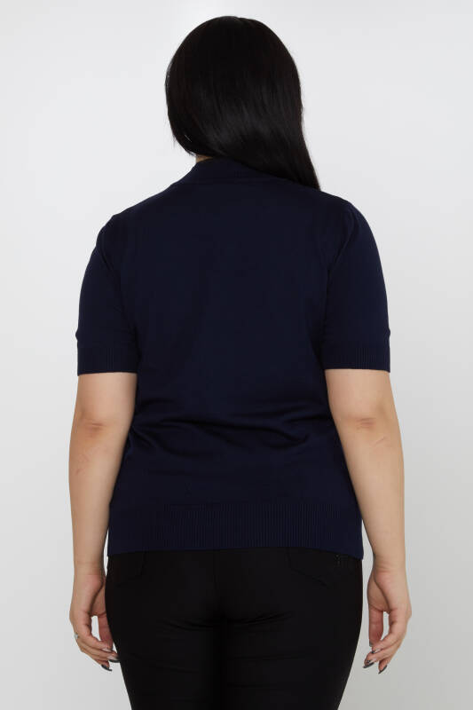 Sweter dzianinowy z haftowanym wzorem w panterkę i stójką w kolorze granatowym - 31565 | KAZEE (zestaw 3 sztuk M-L-XL)