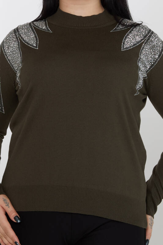 Sweter dzianinowy z haftowanym kamieniem na ramionach i stójką w kolorze khaki - 31601 | KAZEE (zestaw 3 sztuk M-L-XL)