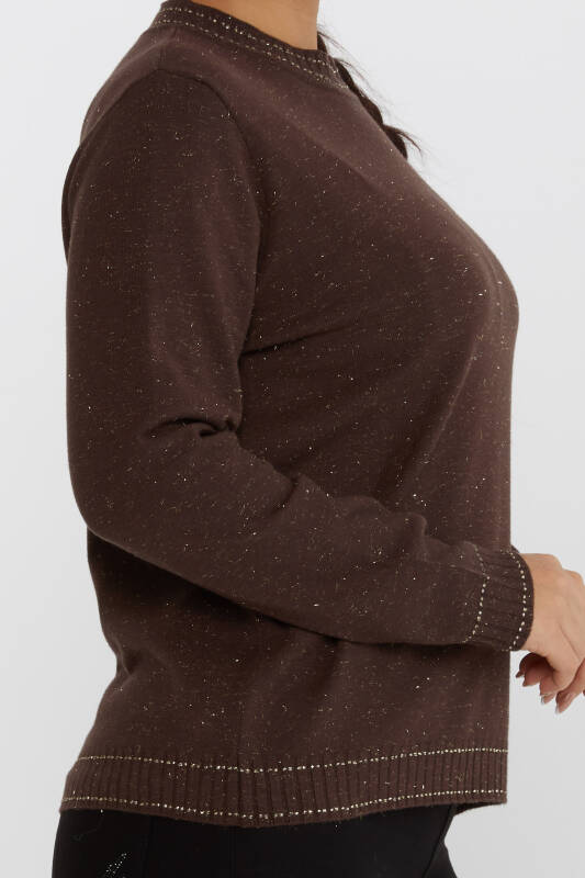 Sweter z dzianiny ze stójką i długim rękawem w kolorze kawy - 31629 | KAZEE (Zestaw 3 sztuk XL-2XL-3XL)