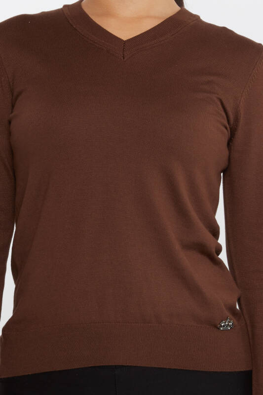 Sweter z dzianiny Basic z długim rękawem brązowy - 30256 | KAZEE (zestaw 4 sztuk M-L-XL-2XL)