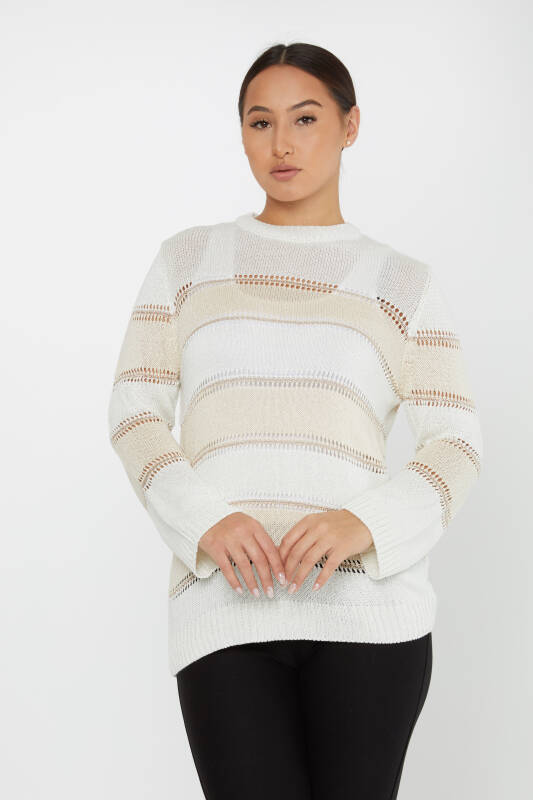 Sweter z dzianiny dwukolorowy z okrągłym dekoltem - 30298 | KAZEE (zestaw 3 sztuk M-L-XL)