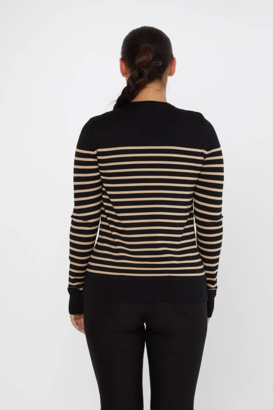 Sweter z dzianiny w paski, dwukolorowy, z długim rękawem, czarno-beżowy - 30898 | KAZEE (zestaw 4 sztuk M-L-XL-2XL)