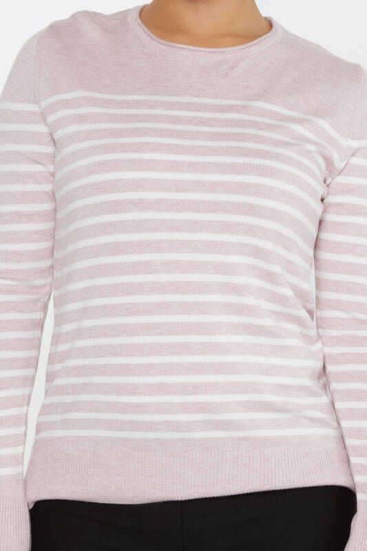 Sweter z dzianiny w paski, z długim rękawem, dwukolorowy, pudrowy - 30898 | KAZEE (zestaw 4 sztuk M-L-XL-2XL)