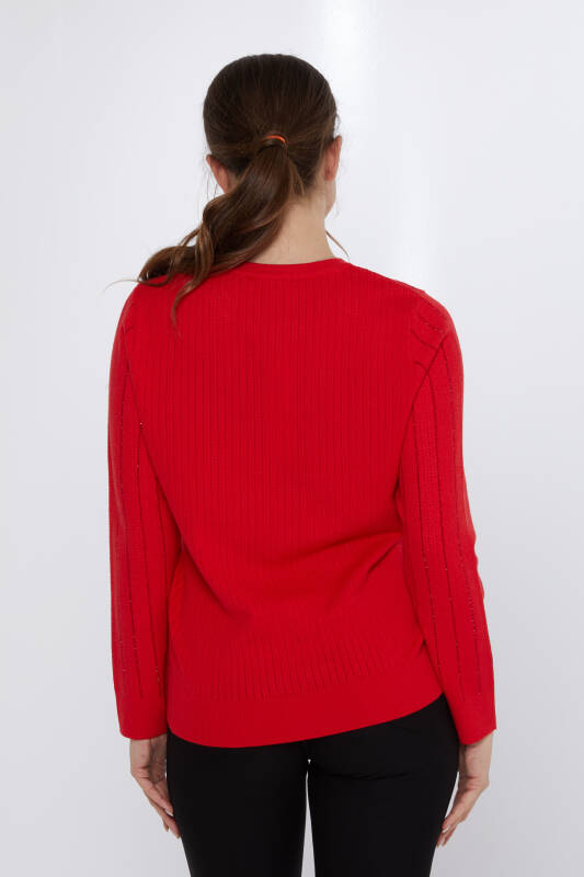 Sweter z dzianiny w paski z haftem i długim rękawem w kolorze czerwonym - 31110 | KAZEE (zestaw 3 sztuk M-L-XL)