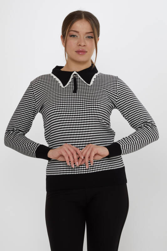 Broszka ze wzorem w szachownicę na swetrze dzianinowym w kolorze czarno-ecru - 31339 | KAZEE (zestaw 3 sztuk M-L-XL)