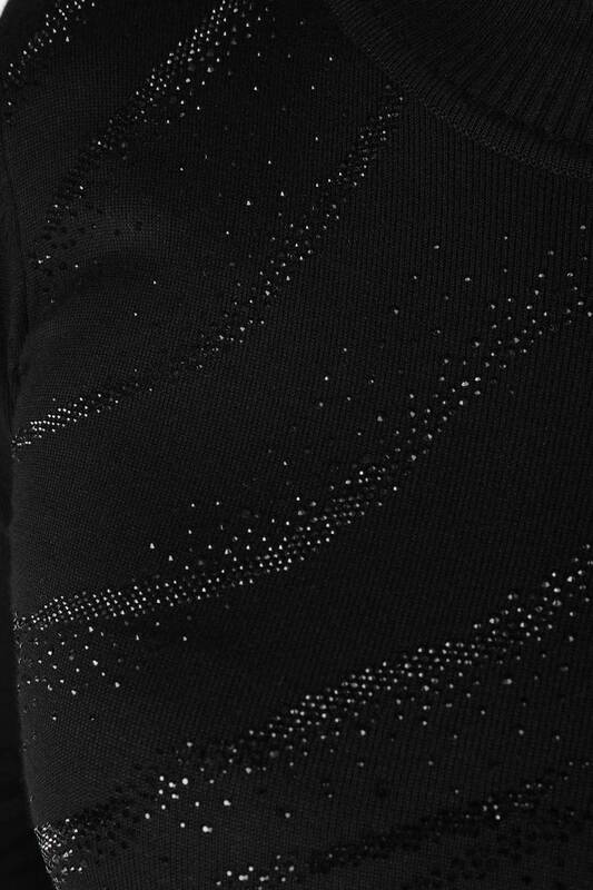 Sweter Dzianinowy Wzorzysty Kamień Haftowany Czarny - 30636 | KAZEE (zestaw 4 sztuk M-L-XL-2XL)