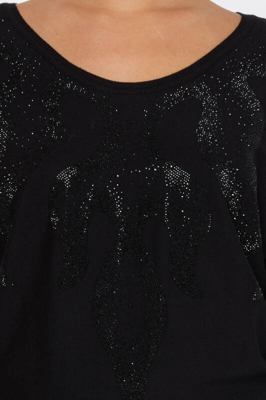 Sweter dzianinowy z długim rękawem, haftowany kamieniami, czarny - 30996 | KAZEE (zestaw 2 sztuk M-L)