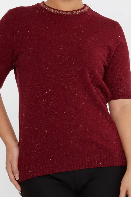 Dzianinowy sweter z krótkim rękawem Brokatowy szczegółowy Bordowy - 31611 | KAZEE (zestaw 3 sztuk S-M-L)