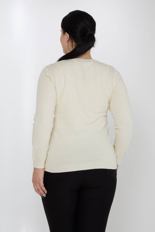 Sweter dzianinowy z kryształkami i haftem, długi rękaw, ecru - 31213 | KAZEE (zestaw 3 sztuk M-L-XL)