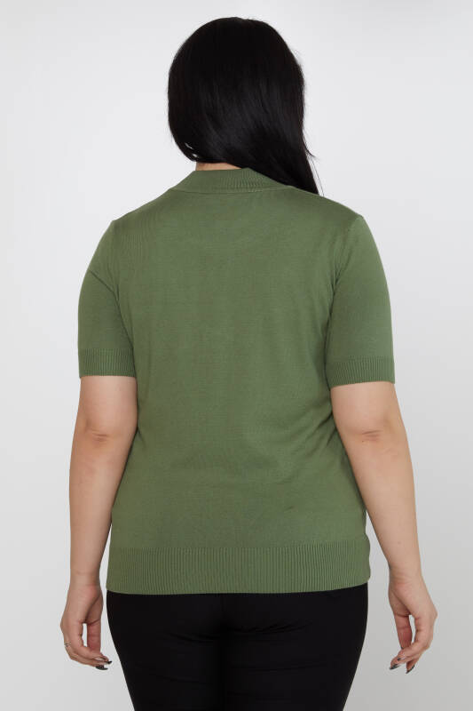 Sweter z dzianiny w panterkę, haftowany, ze stójką, w kolorze khaki - 31565 | KAZEE (zestaw 3 sztuk M-L-XL)