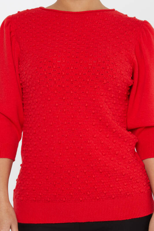 Sweter z dzianiny z bufiastymi rękawami, w kolorze czerwonym, z własnym wzorem - 30340 | KAZEE (zestaw 4 sztuk S-M-L-XL)