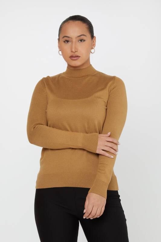 Sweter z dzianiny z długim rękawem i logo, w kolorze camelowym - 30613 | KAZEE (zestaw 3 sztuk S-M-L)