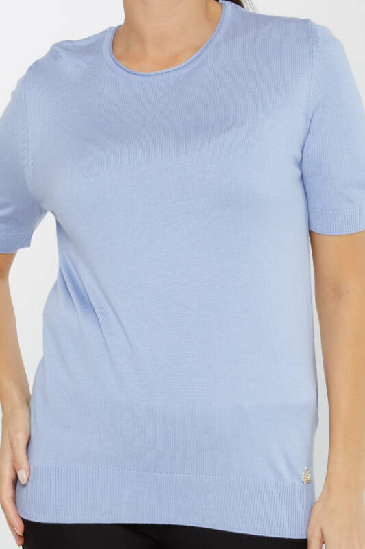 Sweter z krótkim rękawem i logo w kolorze jasnoniebieskim - 16271 | KAZEE (zestaw 4 sztuk L-XL-2XL-3XL)