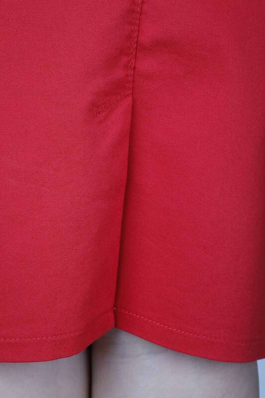 تنورة بربطة خصر وتفاصيل جيب أحمر - 4176 | كازي (مجموعة من 4 42-44-46-48)