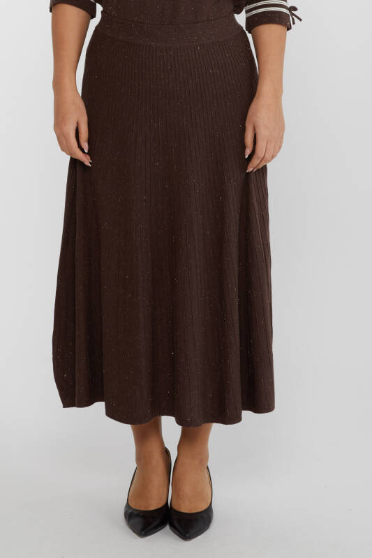 تنورة محبوكة بخصر مطاطي وتفاصيل لامعة باللون البني - 31391 | كازي (مجموعة من 3 مقاسات M-L-XL)
