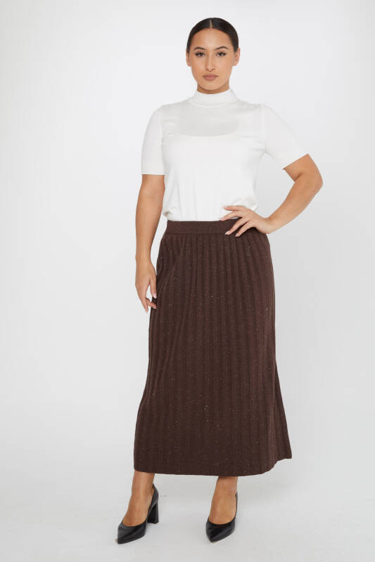 تنورة تريكو بتفاصيل لامعة، بني طويل - 31548 | كازي (مجموعة من 3 L-XL-2XL)