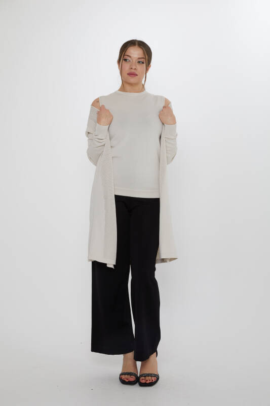 طقم مكون من قطعتين بلوزة بحمالات وكارديجان مفتوح اللون بيج فاتح - 31842 | كازي (مجموعة من 2 مقاس M-L)