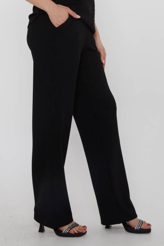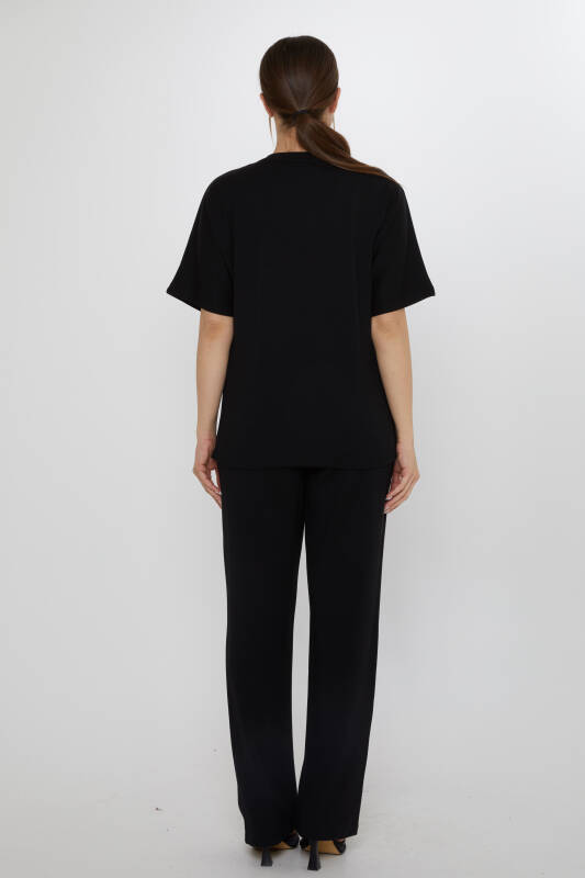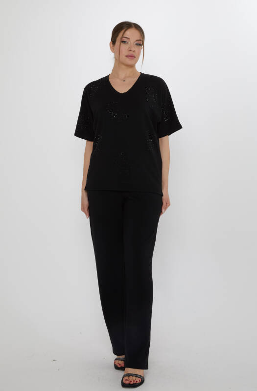 طقم رياضي، بأكمام قصيرة، مزين بالأحجار، أسود - 17893 | كازي (طقم من 3 قطع، مقاسات M-L-XL)