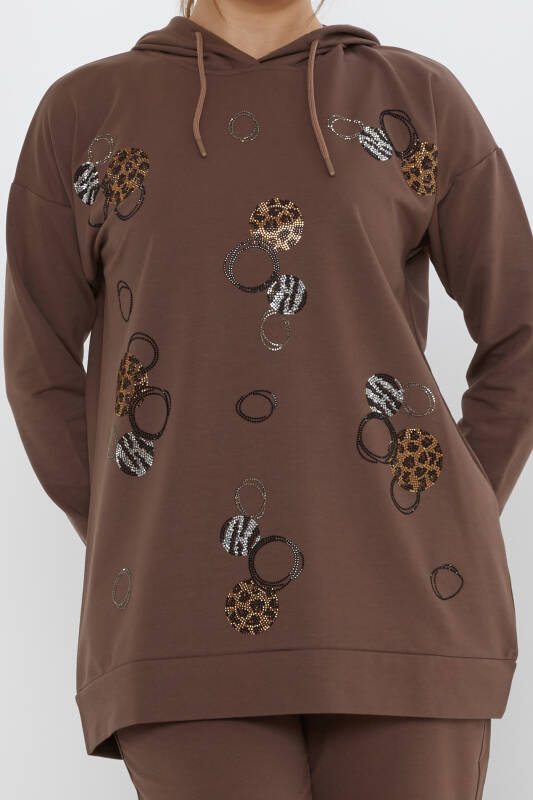 طقم رياضي بغطاء رأس منقوش بالأحجار، لون بني - 17898 | كازي (مجموعة من 3 مقاسات M-L-XL)