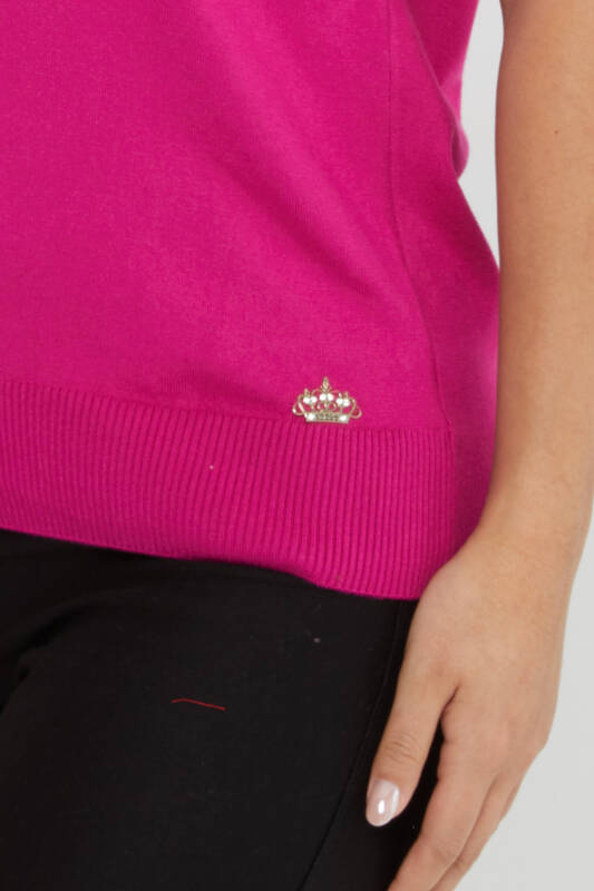سترة تريكو بأكمام قصيرة وشعار الفوشيا - 16271 | كازي (مجموعة من 4 L-XL-2XL-3XL)