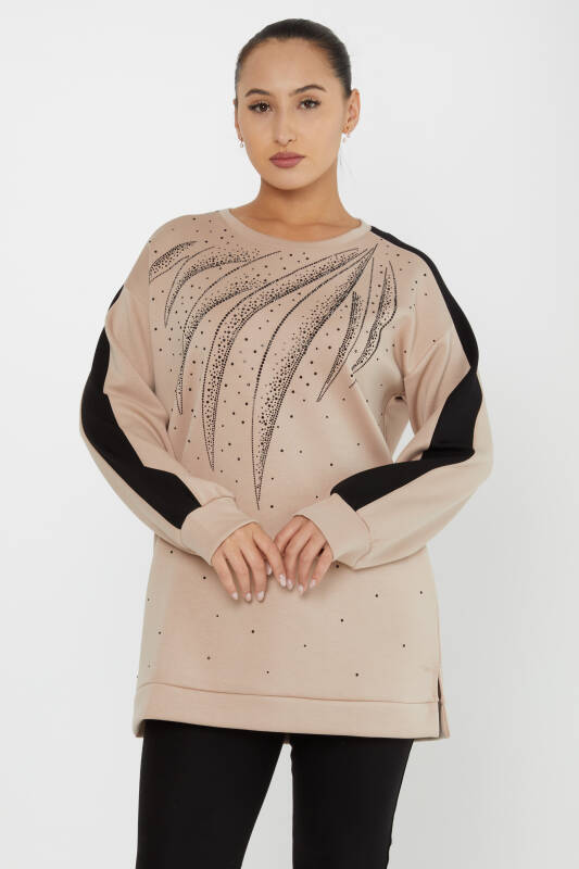 Толстовка с длинным рукавом и вышивкой камнями, бежевый - 17851 | КАЗИ (набор из 3 шт. L-XL-2XL)